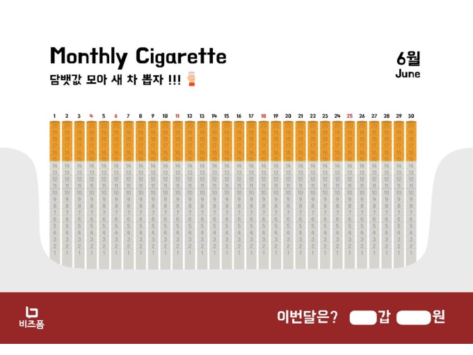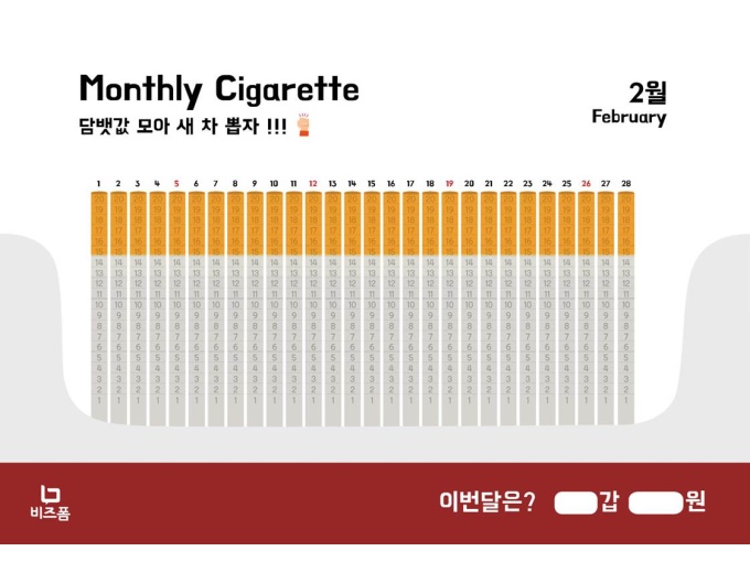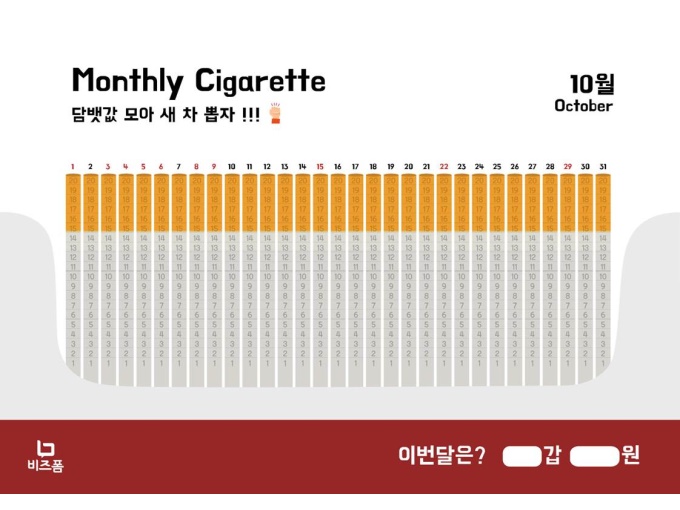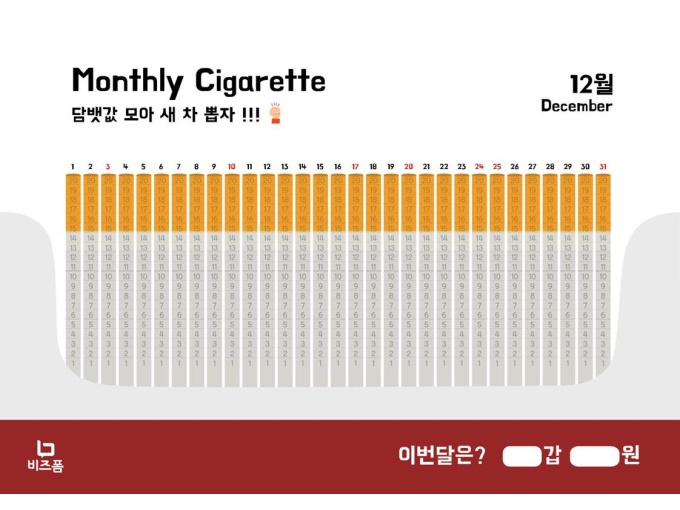담배가계부(가계부, 달력가계부, 2017년가계부)입니다. A4 사이즈로 간편하게 출력해서 사용하실 수 있습니다.
