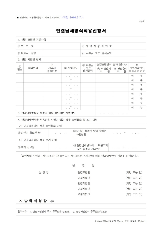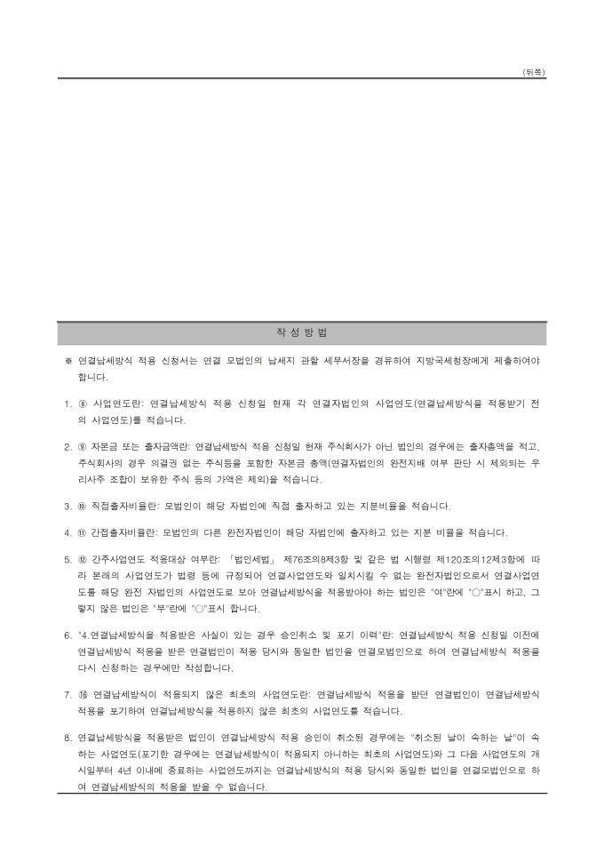 9,000원/월연결납세방식적용신청서입니다.(기획재정부령 제 575호_2016.03.07) ※ 출처 : 국가법령정보센터