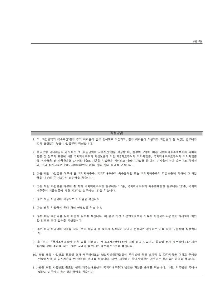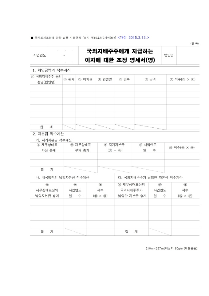 국외지배주주에게 지급하는 이자에 대한 조정명세서(병)(기획재정부령 제 559호 2015.3.13)