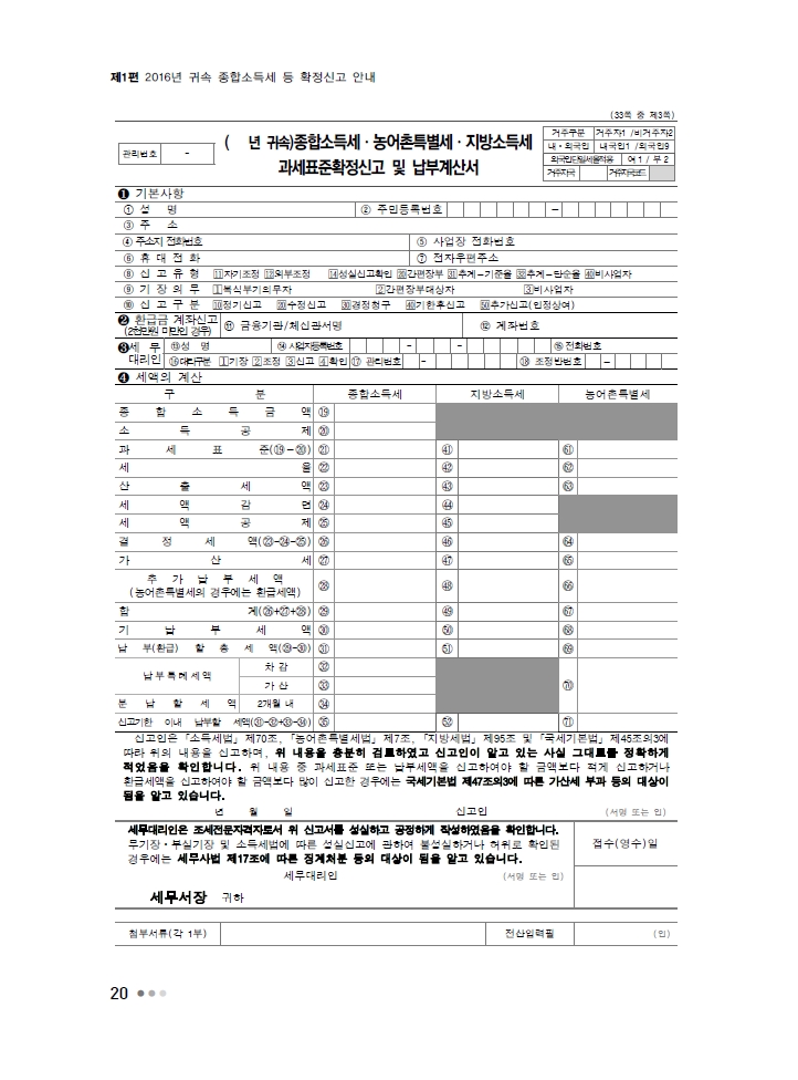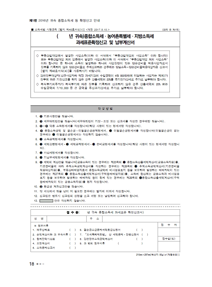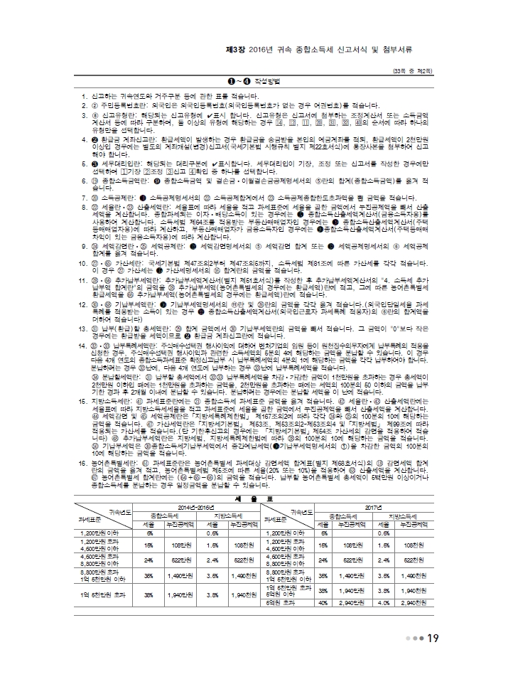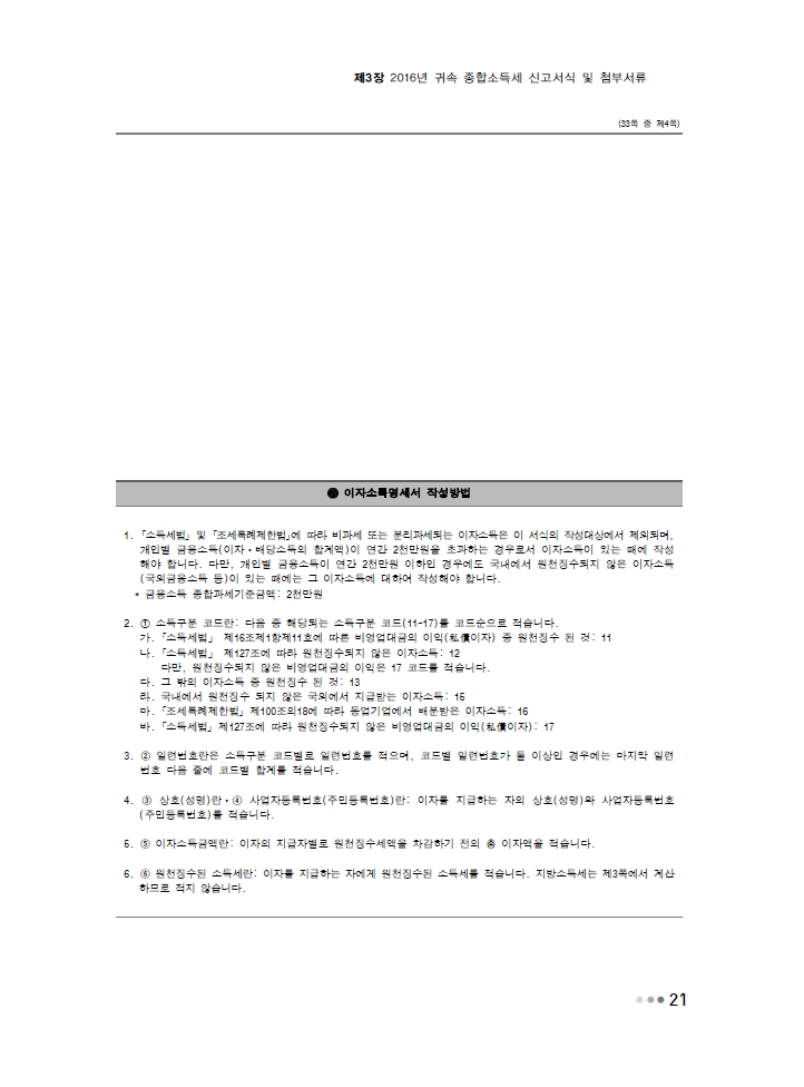 2016년 귀속 종합소득세 신고서 작성요령 입니다. ※ 출 처 : 국세청