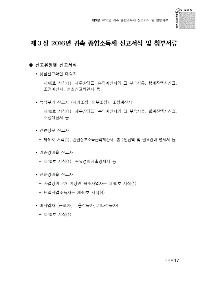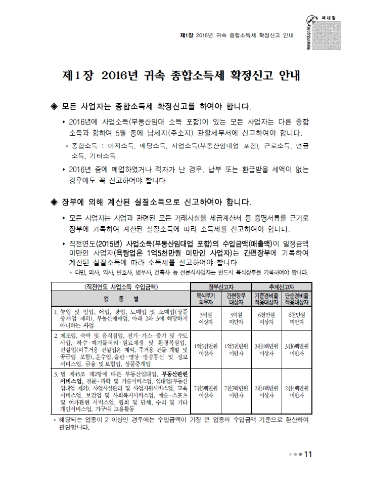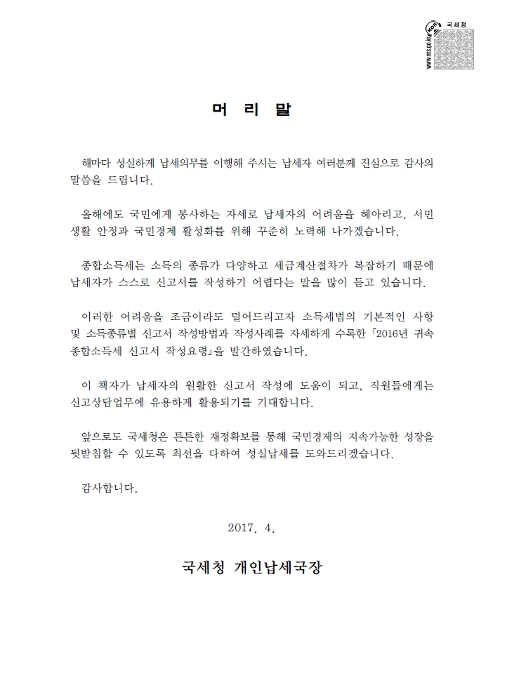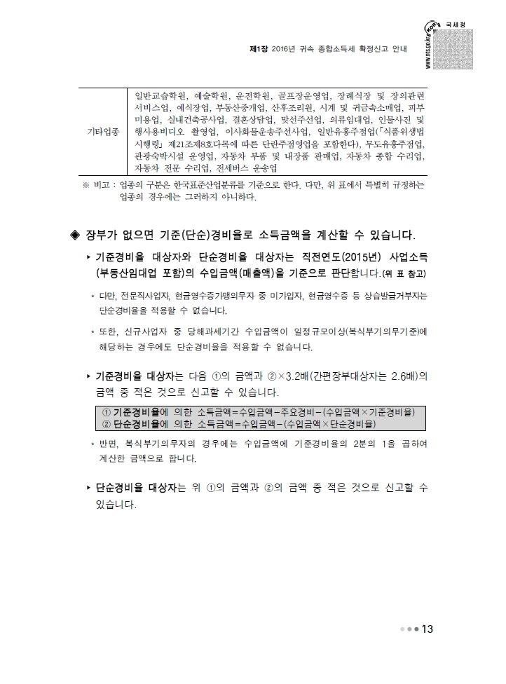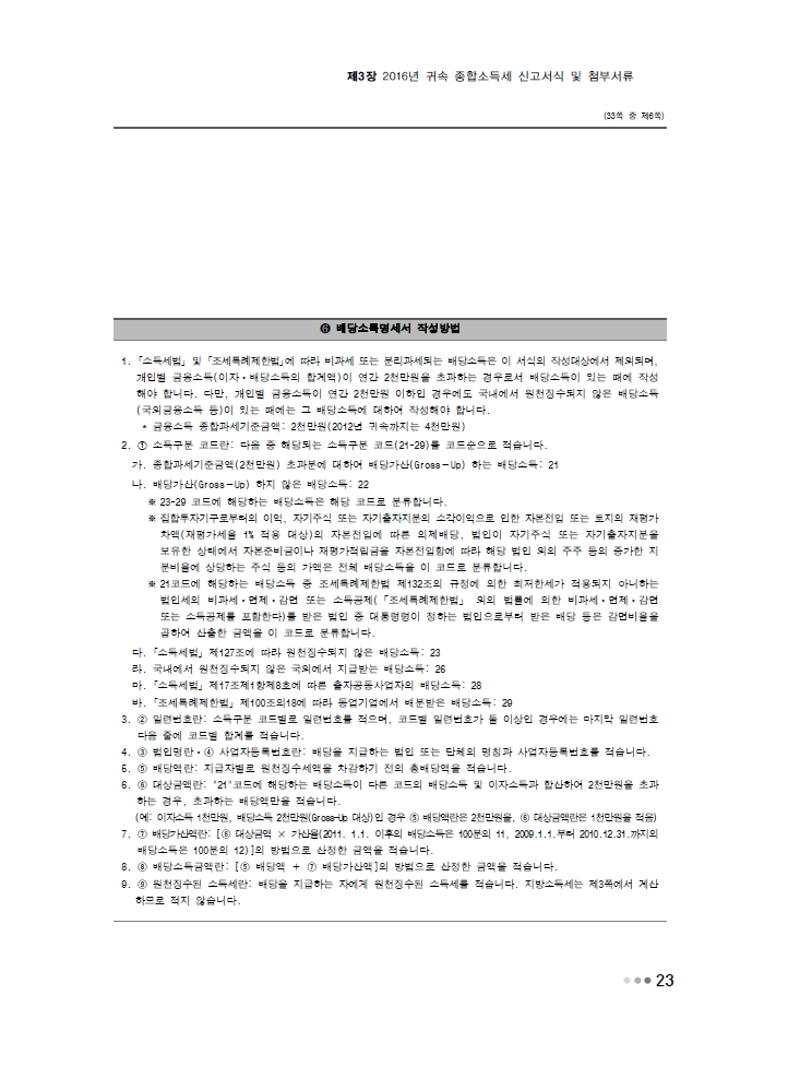 2016년 귀속 종합소득세 신고서 작성요령 입니다. ※ 출 처 : 국세청