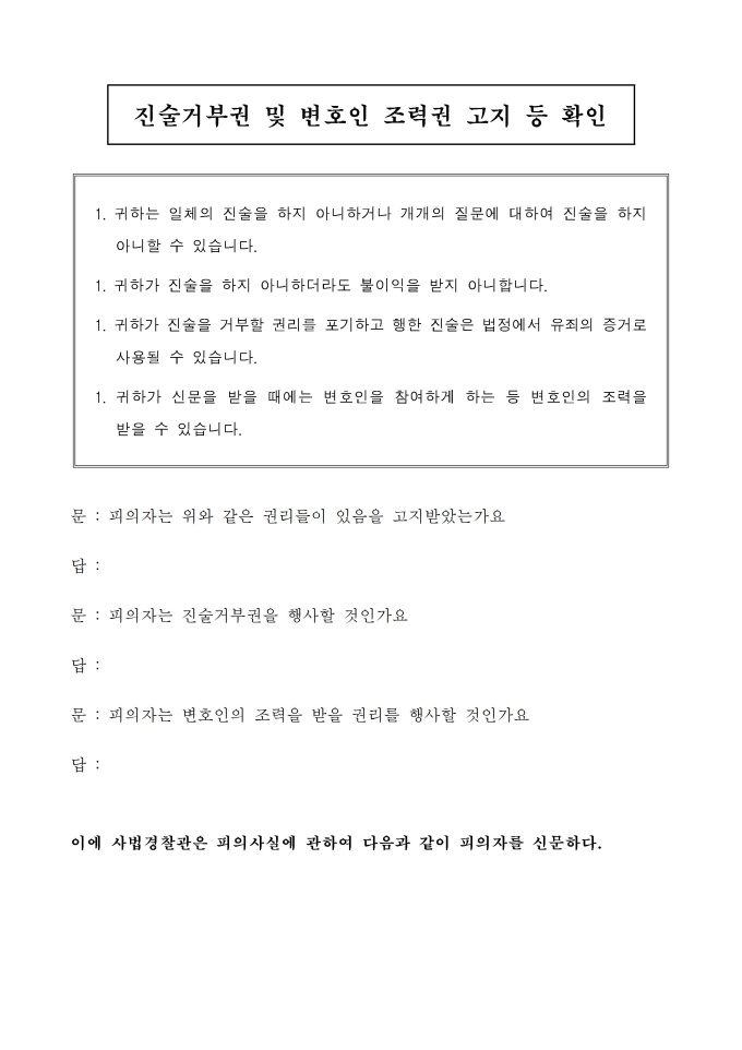 9,000원/월피의자 신문조서입니다. ※출처 : 경찰청 별지 제 26호 서식