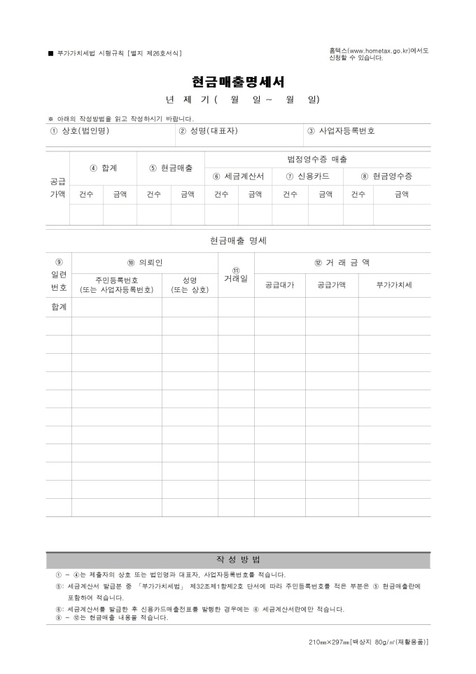 9,000원/월(비즈폼)제 26호 현금매출명세서(2017.03.10) ※출처 : 기획재정부