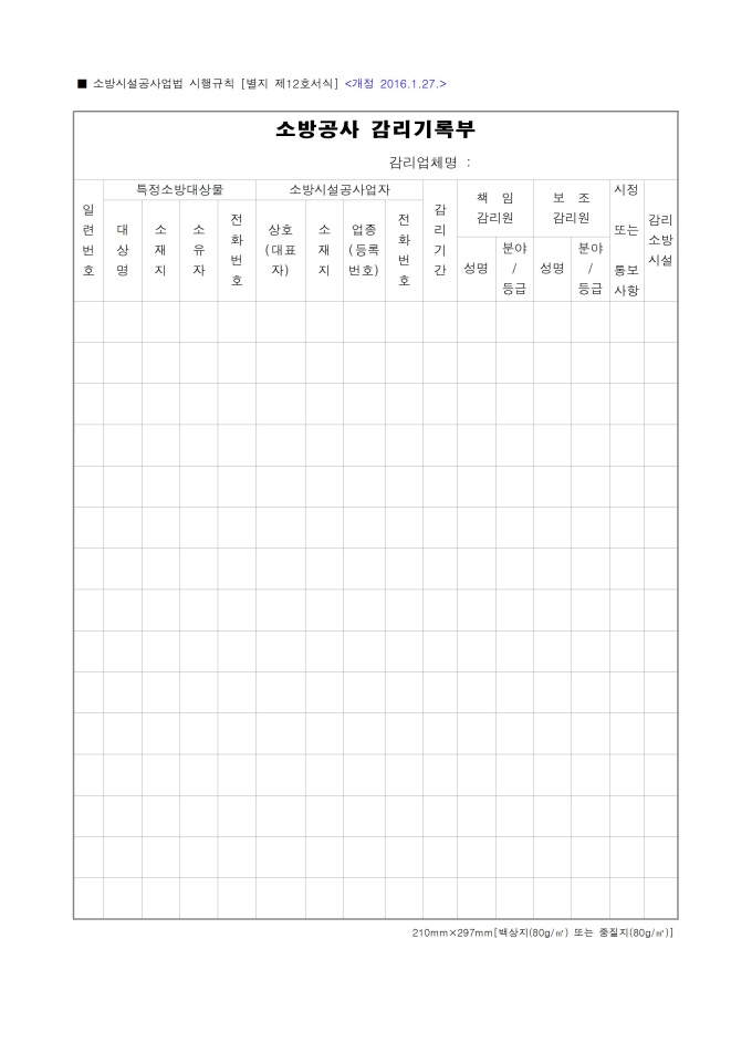 9,000원/월소방공사 감리기록부 입니다.