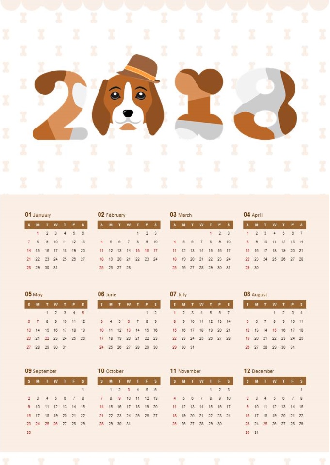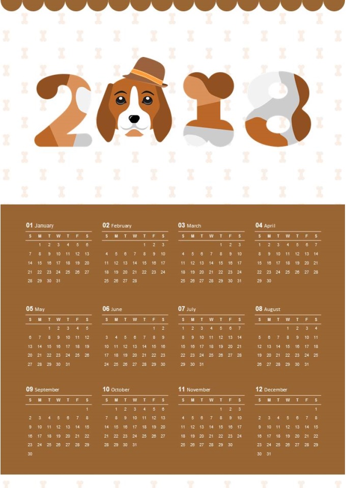 2018년 달력(2018 강아지얼굴 달력)입니다. 한 장에 12달이 다 들어있어 한 눈에 보기 편리한 달력입니다. 데스크나 벽에 부착하여 사용하시면 좋습니다.