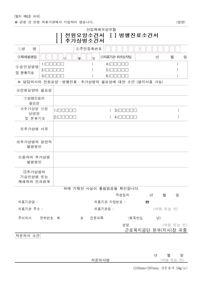 9,000원/월전원요양신청서,병행진료신청서,추가상병신청서 개정서식(17.05.29.)입니다. * 출처 : 근로복지공단(http://www.kcomwel.or.kr)