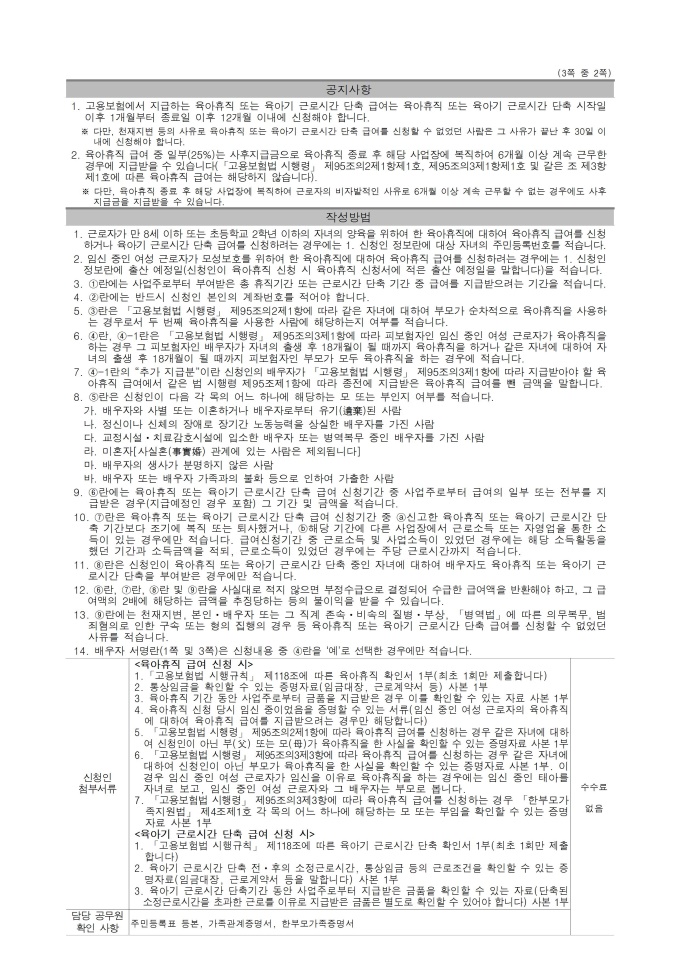 9,000원/월근로자가 만 8세 이하 또는 초등학교 2학년 이하의 자녀를 양육하기 위하여 휴직을 내고 받는 급여를 신청할 때 사용합니다.
