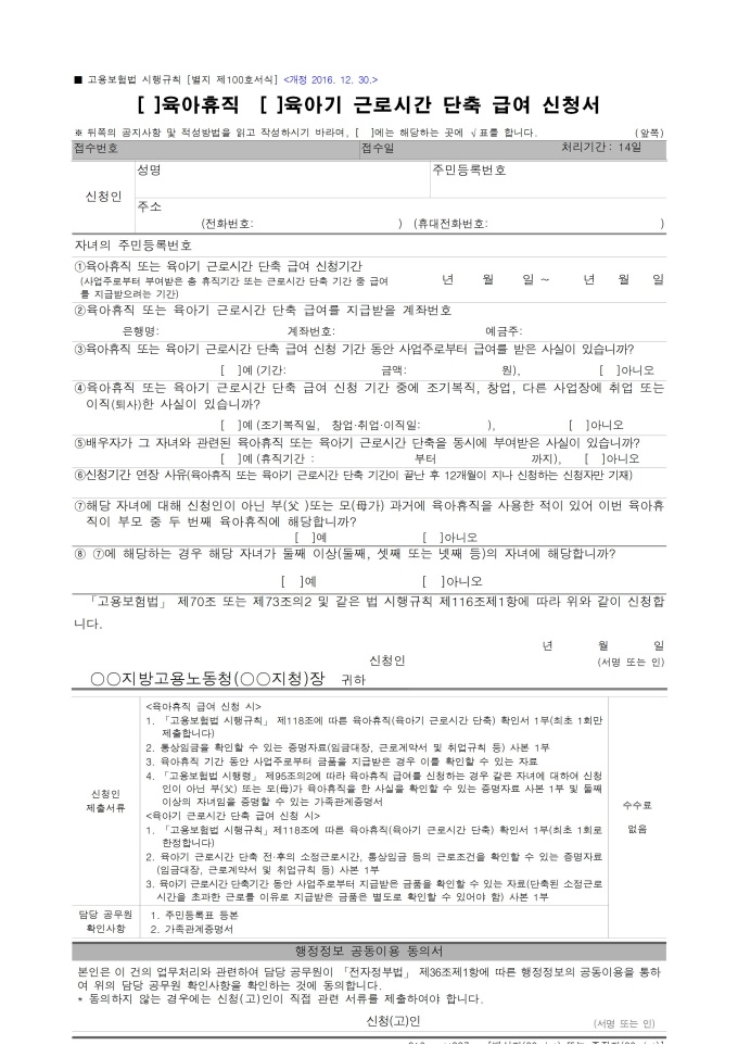 9,000원/월육아휴직과 육아기근로시간단축을 신청할 때 작성하는 신청서입니다.