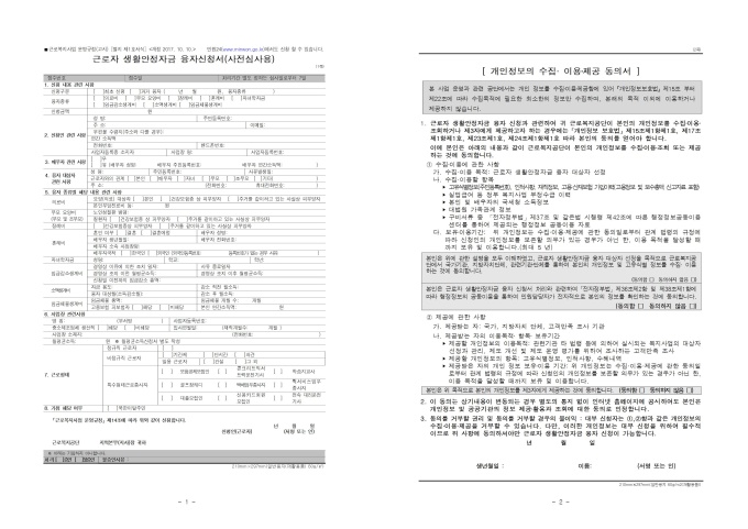 9,000원/월근로자생활안정자금을 지원받기위한 저소득근로자의 제출 서류중 융자신청서입니다.