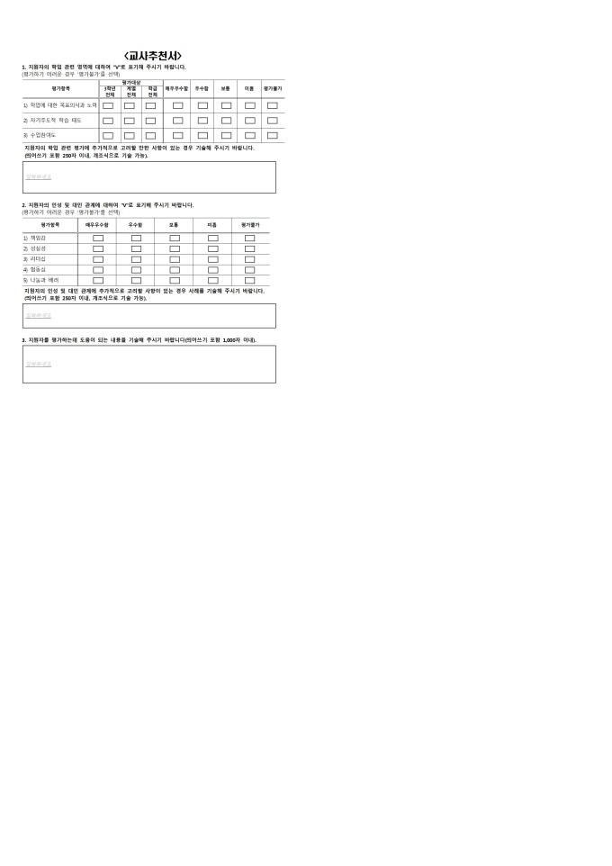 9,000원/월대입 자기소개서와 교사추천서의 다양한 양식으로 인해 오해의 소지기지 않도록 대학교육협회에서 제작한 대입 자기소개서 공통양식입니다.