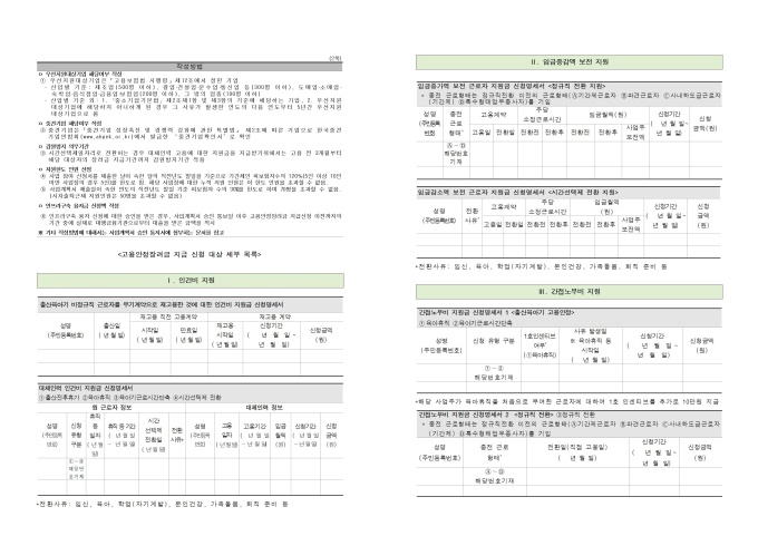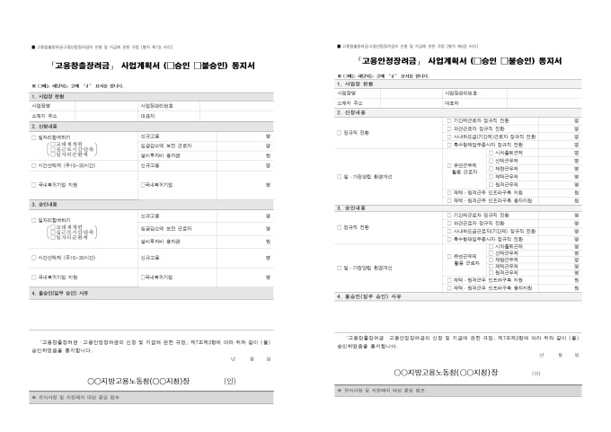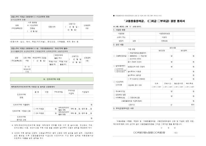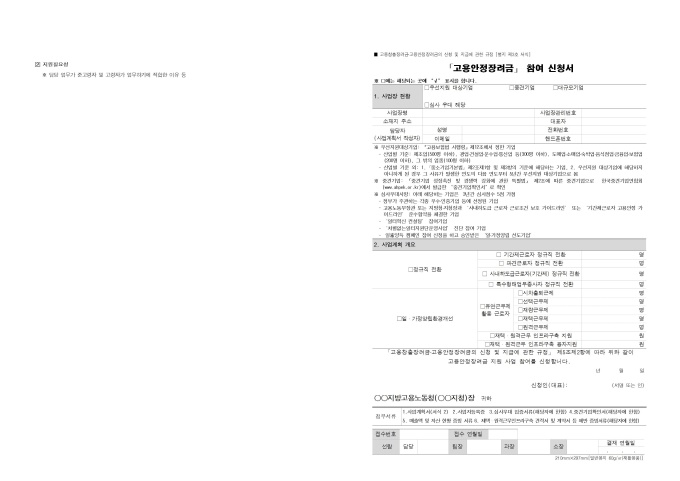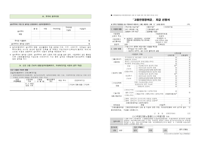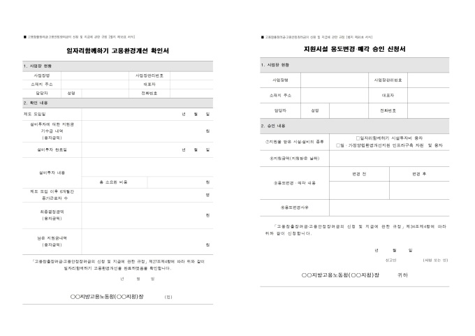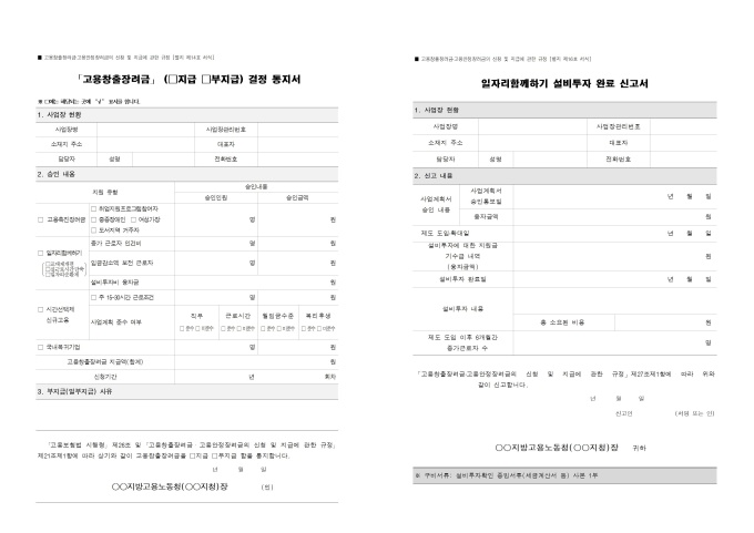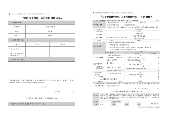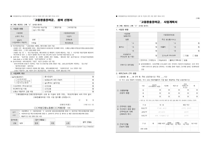 9,000원/월고용창출장려금은 통상적 조건 하에 취업이 어렵거나 취약계층을 고용하거나 교대제 개편, 실근로시간 단축, 시간선택제 일자리 도입 등의 고용형태를 변경하여 고용기회를 확대한 사업주에 대한 지원을 하는 신청서입니다. 고용안정장려금은 근로시간 단축, 유연근무제를 도입하거나 고용이 불안정한 기간제 근로자 등을 정규직으로 전환하는 사업주에 한하여 고용안정과 일자리 질 향상을 지원하는 신청서입니다. 구비서류는 신청서, 사업계획서, 사업자등록증, 매출액 및 자산현황 증빙서류를 제출하시면 됩니다.