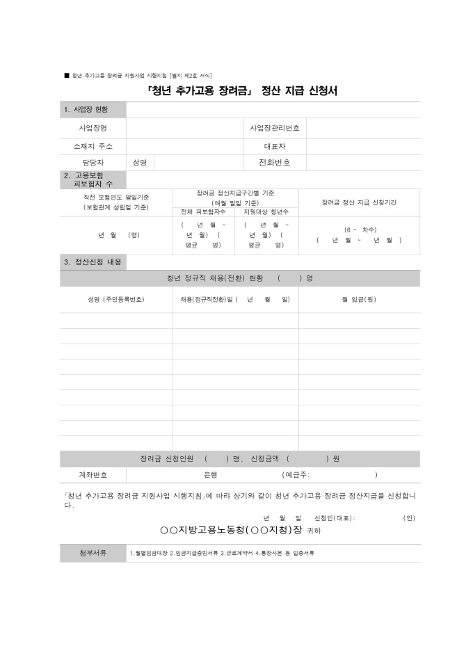 9,000원/월고용노동부에서 청년 일자리를 확대하고자 청년을 고용한 기업에게 지원금을 지급하는 사업에 대한 정산내용을 신청할 때 사용합니다.