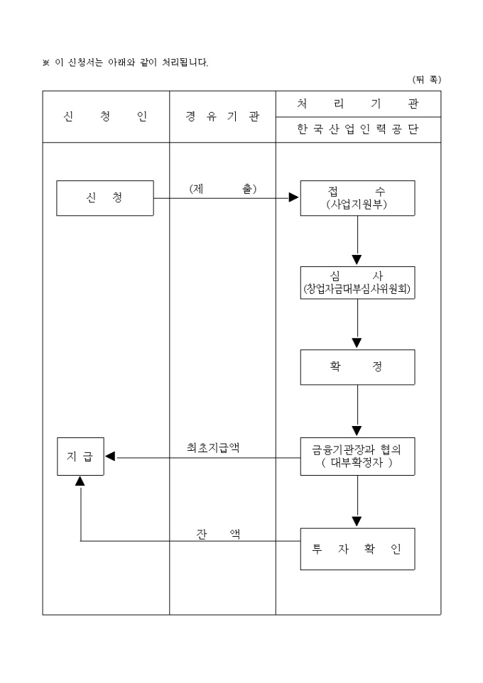 9,000원/월신청인, 대부자격, 대부신청사항으로 되어 있는 창업자금대부신청서입니다.