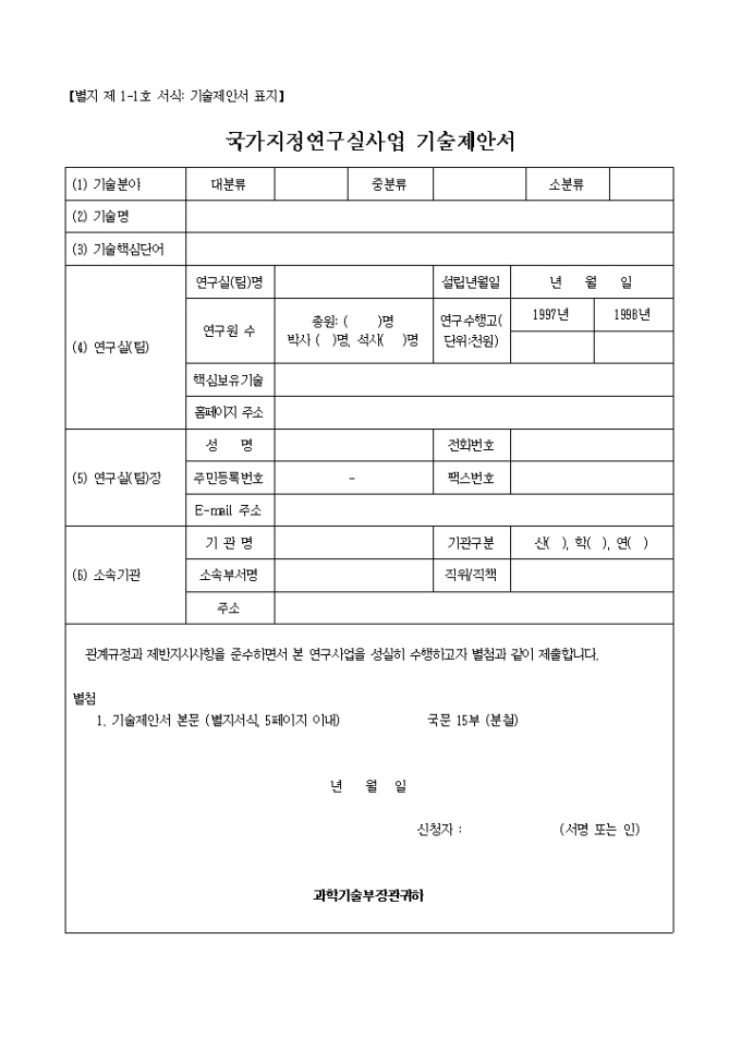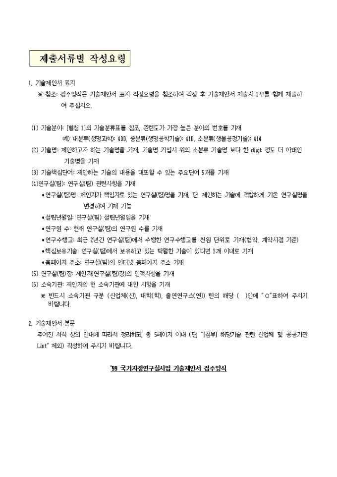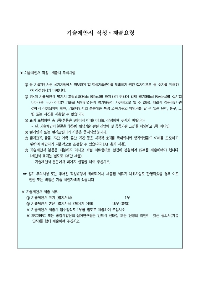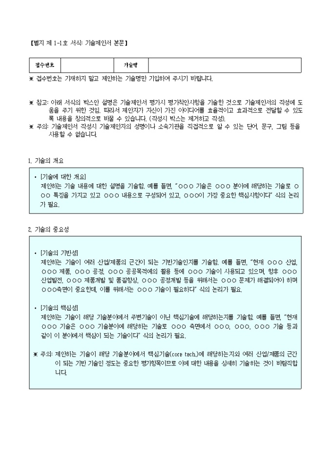 9,000원/월국가지정연구실사업기술제안서 작성.제출요령과 제출서류별 작성요령이 상세히 기재되어 있습니다. 다음과 같은 서식으로 구성되어 있습니다. 1.별지 제 1-1호 서식: 기술제안서 표지 2.별지 제 1-1호 서식: 기술제안서 본문