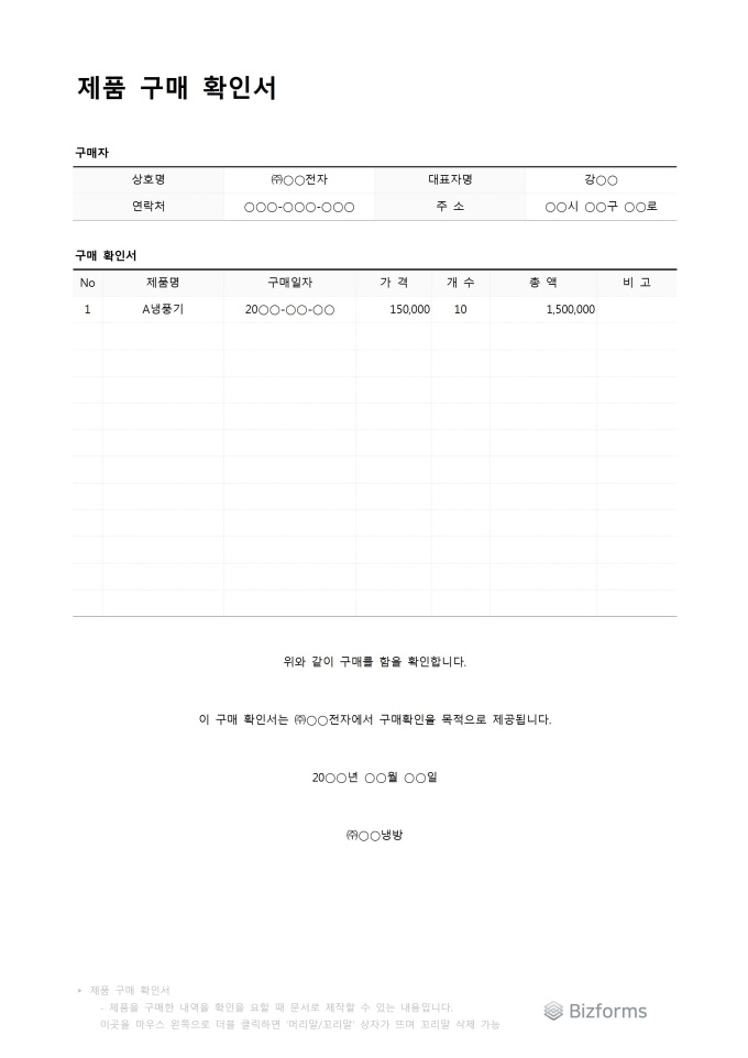 9,000원/월제품 구매 확인서 입니다. 제품을 구매한 내역을 확인할때 사용할 수 있는 문서입니다.