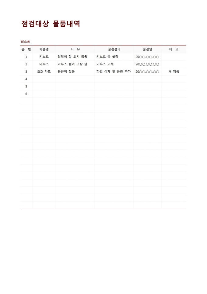 9,000원/월점검대상물품내역입니다. 점검을 해야할 대상 물품 내역을 작성할 때 사용할 수 있는 문서입니다.