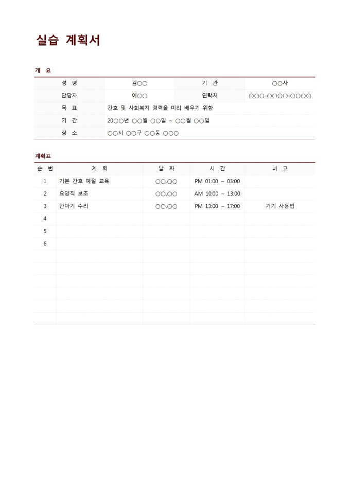 9,000원/월실습계획서입니다. 실습할 때 필요한 내용을 작성할 때 사용할 수 있는 문서입니다.