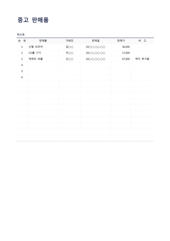 9,000원/월중고판매품입니다. 중고로 판매한 내역을 작성할 때 사용할 수 있는 문서입니다.