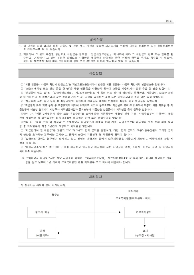 9,000원/월사업장에서 임금 및 퇴직금을 받지 못하고 퇴직한 근로자에게 일정 금액을 지급 받도록 청구할 때 작성하는 문서입니다.