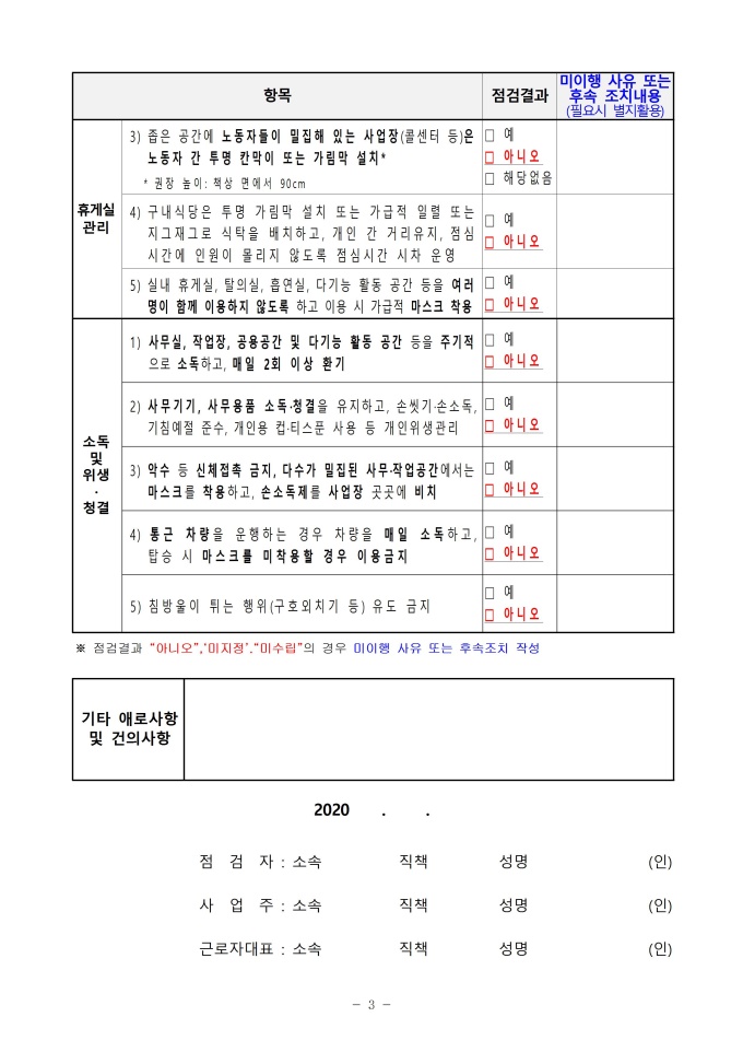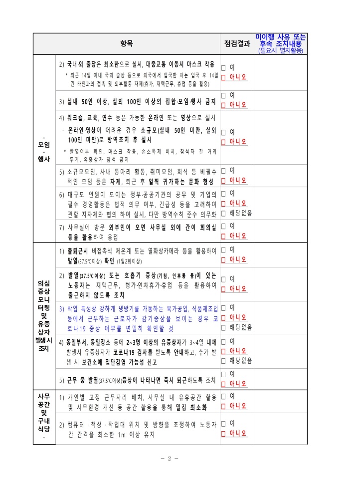 9,000원/월코로나19 예방 및 확산방지를 위한 사회적 거리두기 2단계 지침 사업장 점검표입니다.