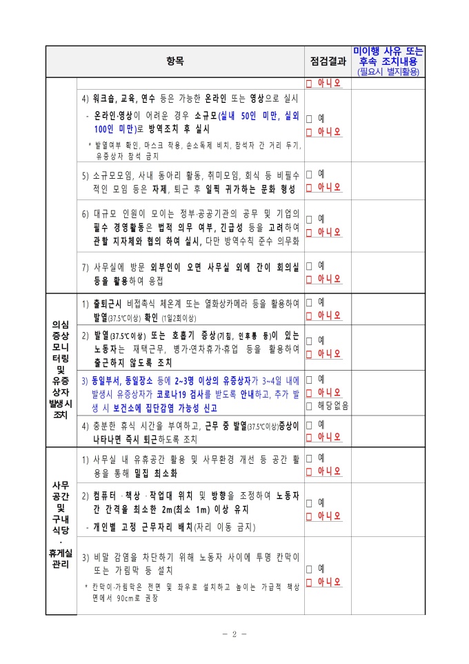 9,000원/월코로나19 사회적 거리두기 2단계 콜센터 사업장 자체 점검표입니다.
