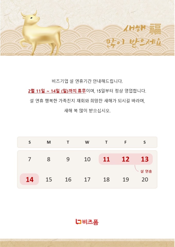 설휴무안내(황금빛소)입니다. 차별화된 연휴안내문을 사용해보세요. A4사이즈로 제작되었습니다.
