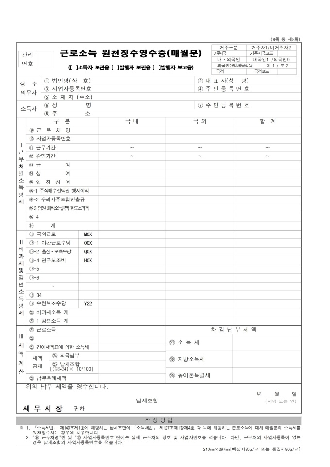 9,000원/월근로소득원천징수영수증입니다. ※ 출처 : 국세청