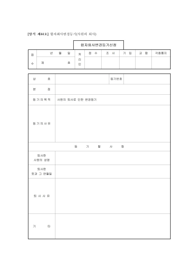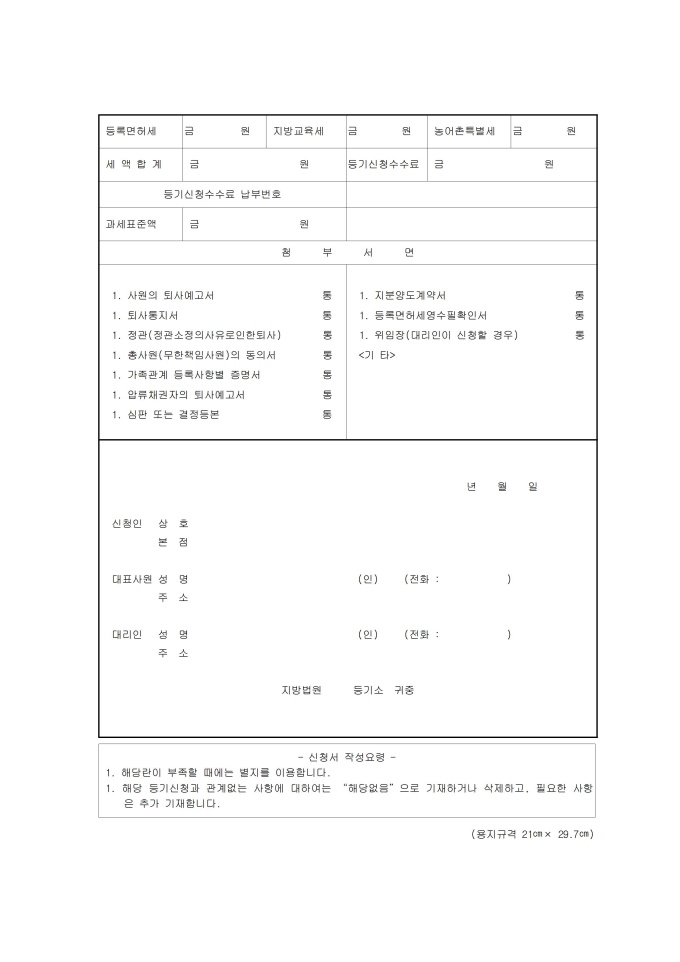 9,000원/월사원의 퇴사로 인한 변경 등기를 신청할 때 사용할 수 있습니다.