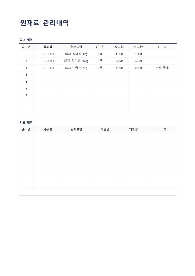 9,000원/월원재료관리내역입니다. 원재료를 관리하는 내역을 작성할 때 사용할 수 있는 문서입니다.