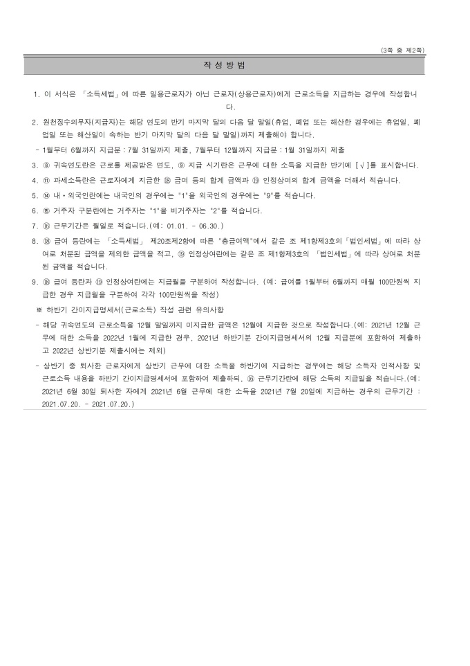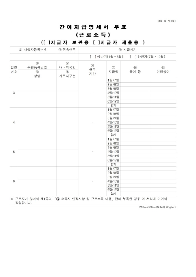 9,000원/월2022년부터 6개월분의 소득을 월별로 구분하여 기재해야 합니다. 개정에 맞춘 간이지급명세서 정부 서식입니다. ※ 출처 : 국세청