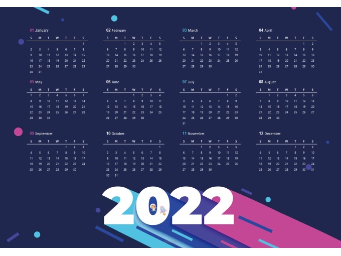 2022년 달력(원페이지,PPT달력,우주빔)입니다. 한 장에 12달이 다 들어있어 한 눈에 보기 편리한 달력입니다. 데스크나 벽에 부착하여 사용하시면 좋습니다.
