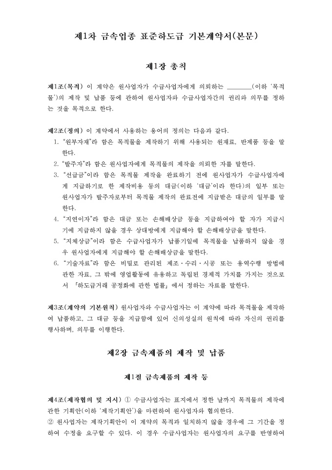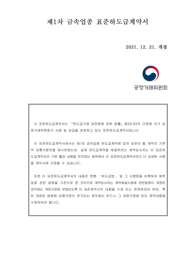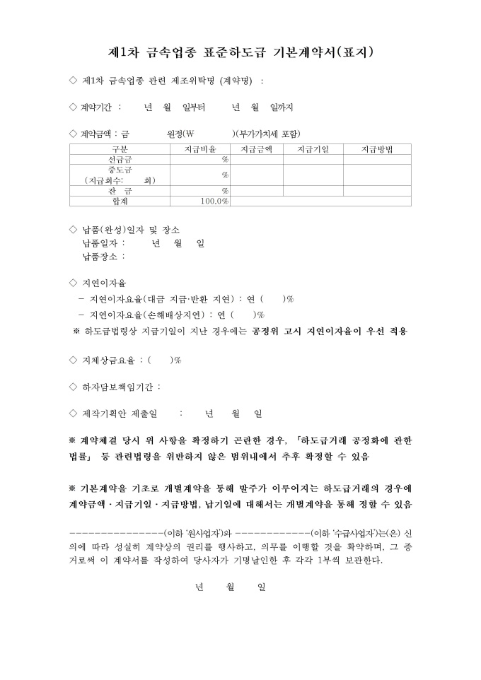9,000원/월제1차 금속업종 표준하도급 계약서입니다.
