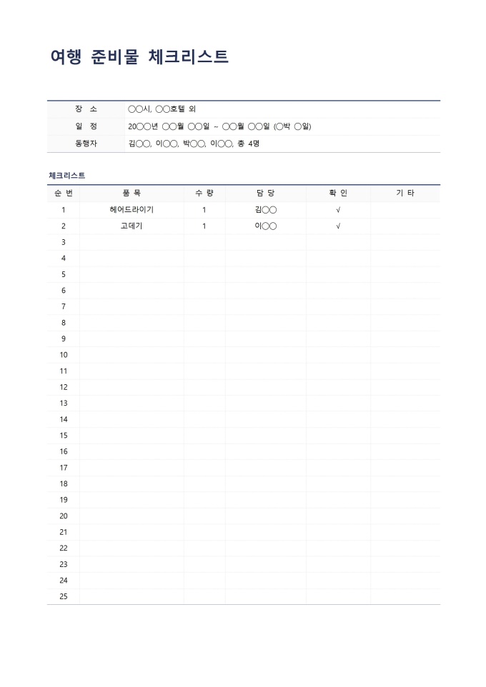 9,000원/월여행 준비물 체크리스트입니다. 여행 준비물 체크리스트를 작성할 때 사용할 수 있는 문서입니다.