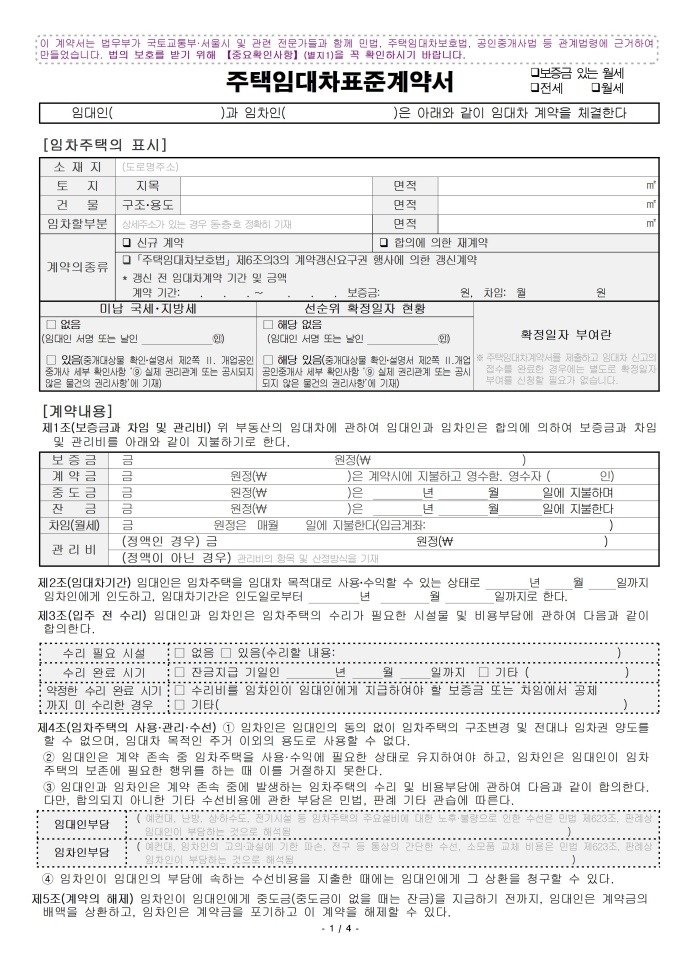 9,000원/월2022년 개정 주택임대차 표준계약서 (관리비 항목 신설, 계약체결 후 입주 전 임대인의 담보권 설정금지 특약 신설) 입니다.