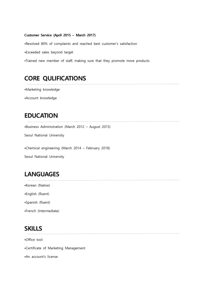 해외 취업, 외국계 기업 취업을 위한 영문 이력서 양식입니다.