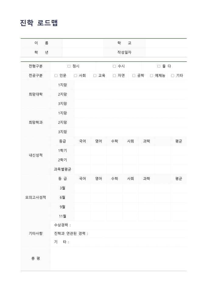 9,000원/월진학 로드맵입니다. 진학 상담 전 작성하는 진학 로드맵 양식입니다.