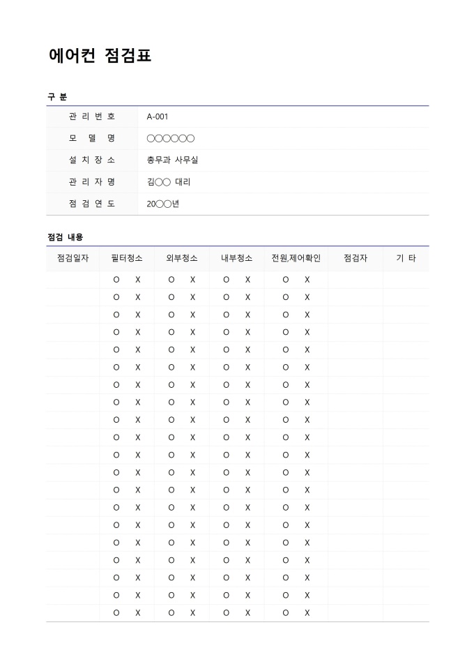 9,000원/월에어컨 점검표입니다. 에어컨 점검표를 작성할 때 사용할 수 있는 문서입니다.