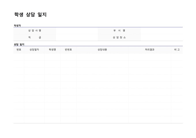 9,000원/월학생 상담 일지입니다. 학생을 상담하고 일지를 작성할 때 사용할 수 있는 문서입니다.