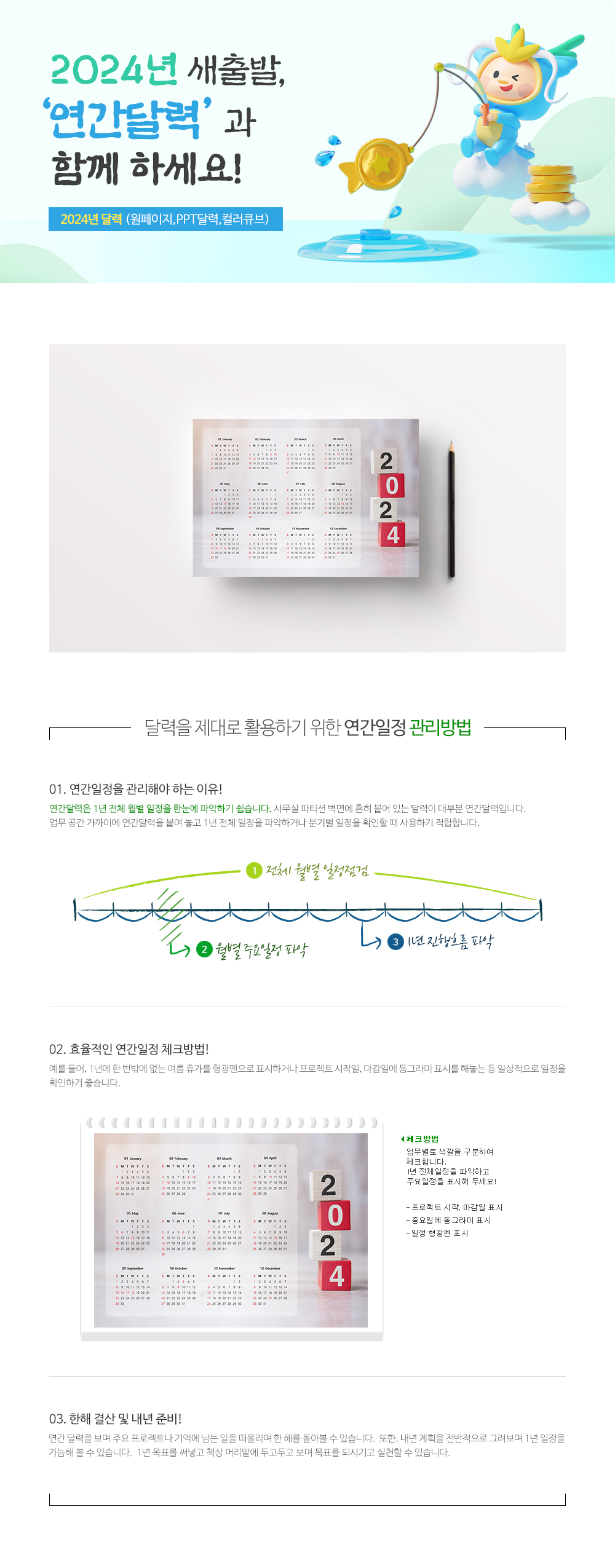 2024년 달력(원페이지,PPT달력,컬러큐브)