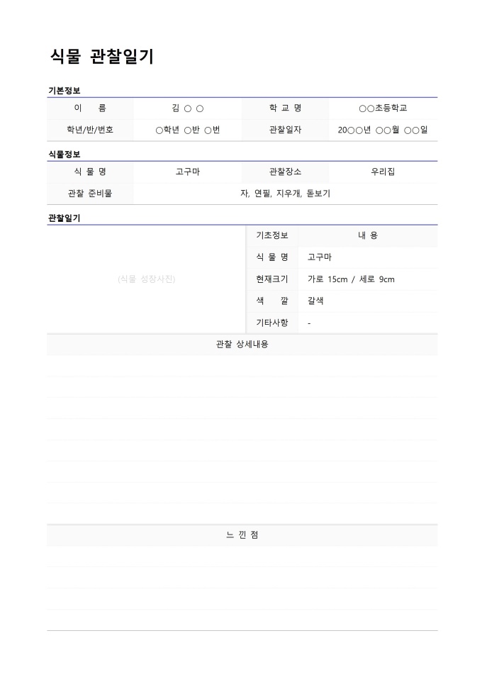 9,000원/월식물 관찰일기입니다. 식물 관찰일기를 작성할 때 사용할 수 있는 문서입니다.