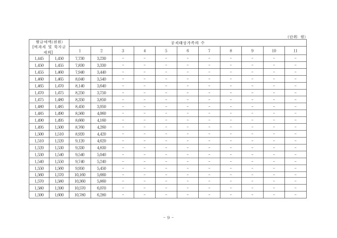 9,000원/월2024년 03월 개정된 근로소득 간이세액표입니다. 시행일(2024.03.01) 이후 원천징수하는 분부터 적용합니다.