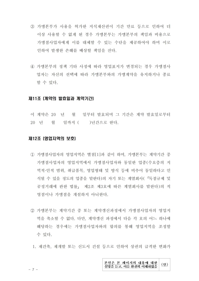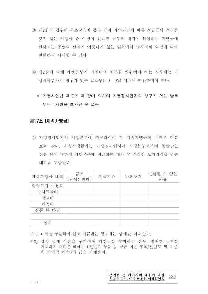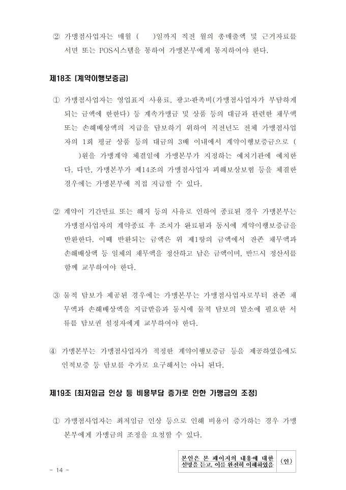 기타도소매업 표준가맹계약서