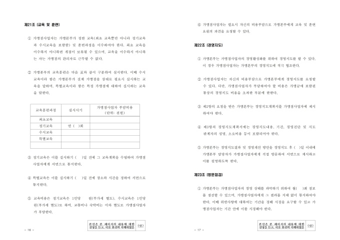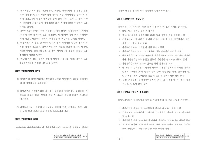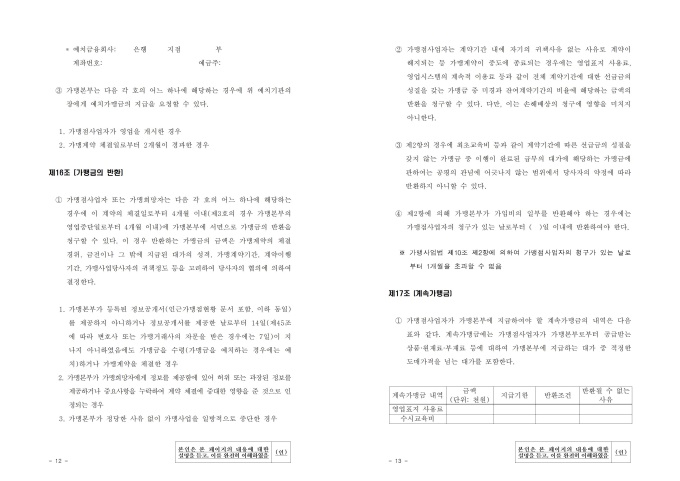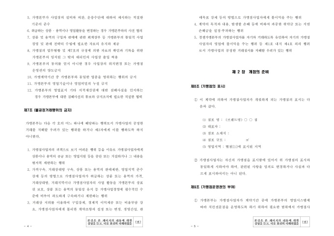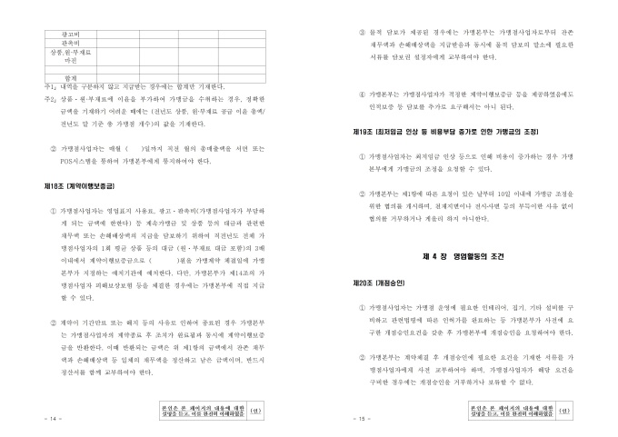 9,000원/월공정거래위원회는 가맹사업법 제11조 제4항의 규정에 따라 건전한 가맹사업거래질서를 확립하고 불공정한 내용의 가맹계약이 통용되는 것을 방지하기 위해 표준가맹계약서를 개정하여 그 사용을 적극 권장하고 있으니, 가맹계약서 작성 시 도입하여 활용하시기 바랍니다. [2023. 1 개정]