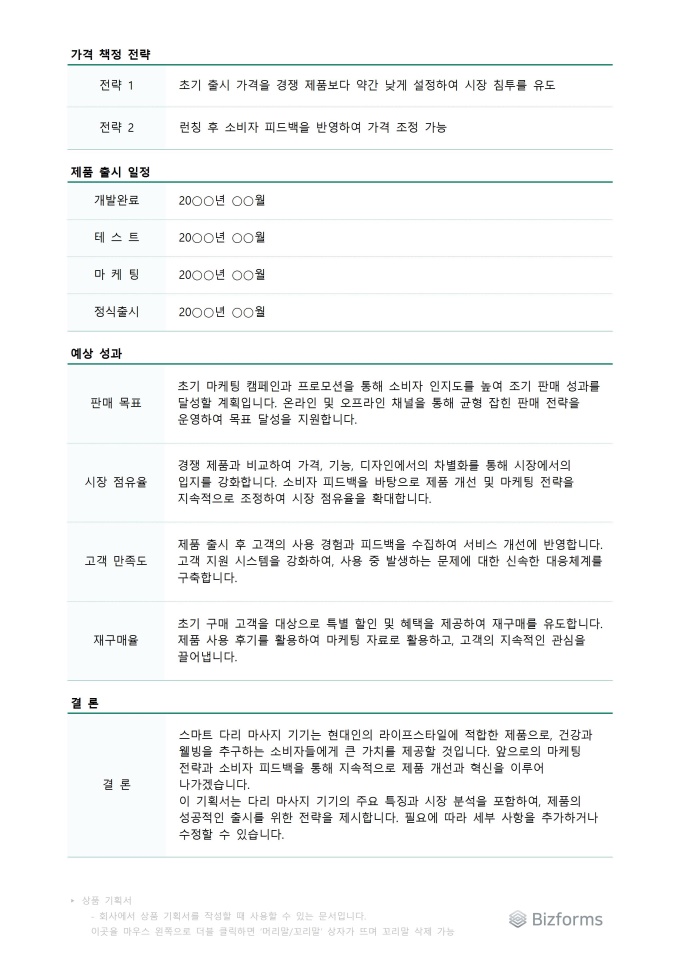 9,000원/월상품 기획서 서식입니다. 상품 기획서는 새로운 상품을 개발하고 시장에 출시하기 위해 필요한 정보를 체계적으로 정리한 문서입니다. 이 기획서는 상품의 개념부터 시장 분석, 마케팅 전략까지 다양한 요소를 포함합니다.