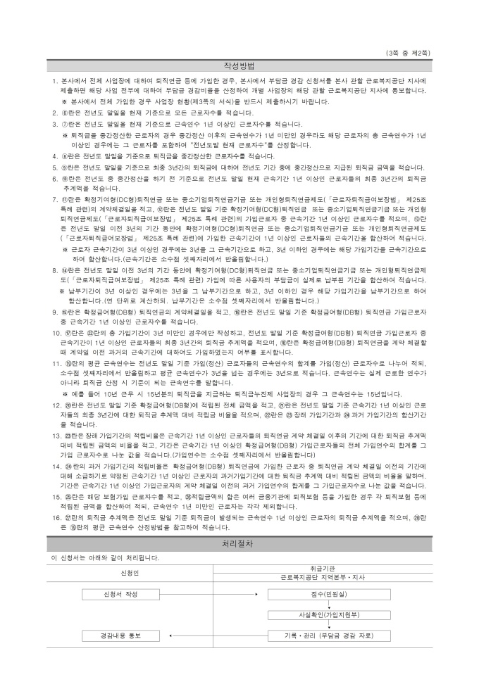 9,000원/월부담금 경감 신청서 서식입니다. 임금채권보장법 시행령 제15조제2항 및 같은 법 시행규칙 제9조제1항에 따라 부담금 경감을 신청할 때 사용할 수 있는 서식입니다. 임금채권보장법 시행규칙 [별지 제7호서식]