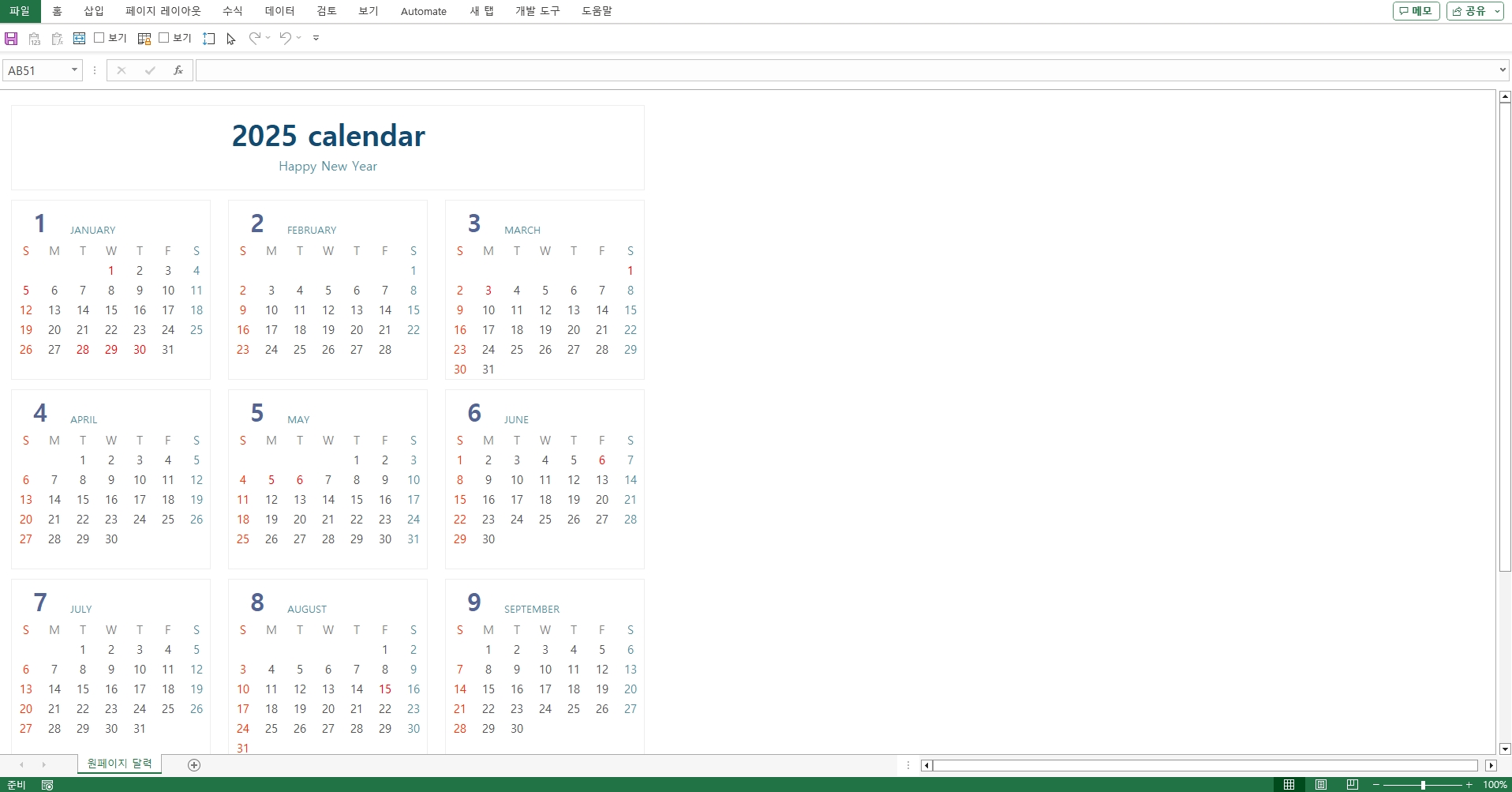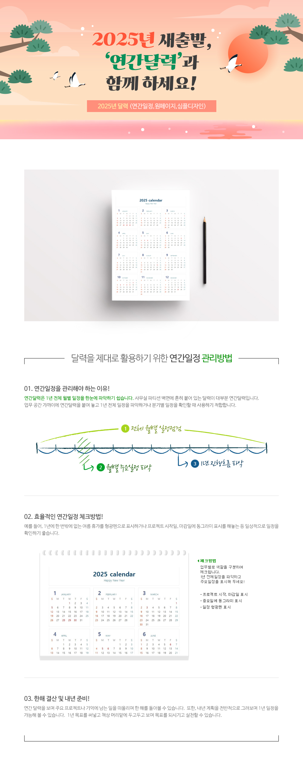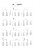 2025년 달력(연간일정,원페이지,심플디자인)입니다. 화이트 배경의 심플한 디자인을 활용하여 원페이지로 제작하였습니다. 연간 일정을 관리하시는데 유용하게 사용할 수 있습니다.