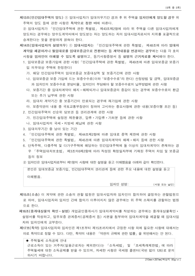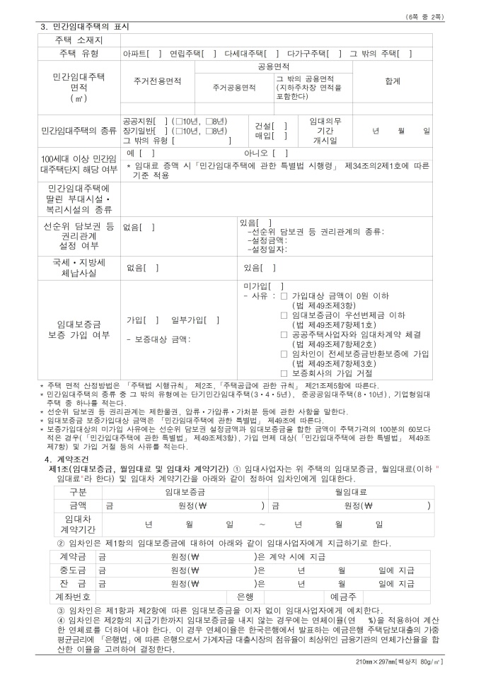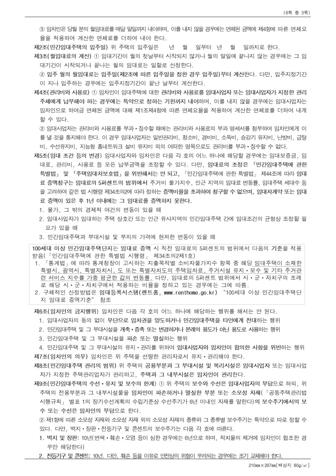 9,000원/월표준임대차계약서 서식입니다. 임대사업자와 임차인이 임대차계약을 체결하고 이를 증명하기 위해 계약서 2통을 작성하며, 임대사업자와 임차인이 각각 서명 또는 날인한 후 각각 1통씩 보관해야 합니다. 민간임대주택에 관한 특별법 시행규칙 [별지 제24호서식]