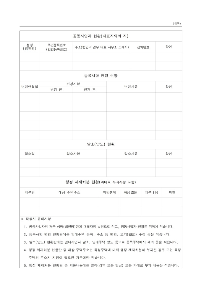 9,000원/월임대사업자 등록대장 서식입니다. 민간임대주택에 관한 특별법 시행규칙 [별지 제2호서식] 입니다.