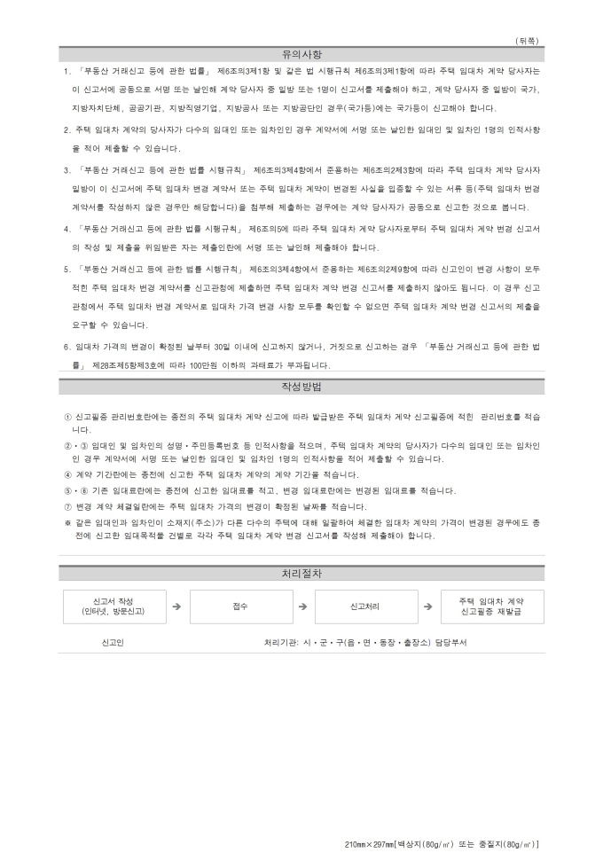 9,000원/월주택 임대차 계약 변경 신고서 서식입니다. 주택 임대차 가격 변경 내역을 신고하고자 할 때 사용할 수 있는 서식입니다. 부동산 거래신고 등에 관한 법률 시행규칙 (별지 제5호의4서식) 입니다. [개정 2023. 12. 29.]