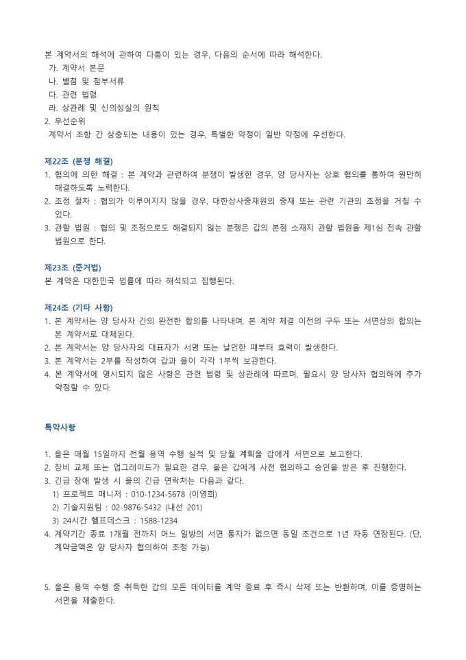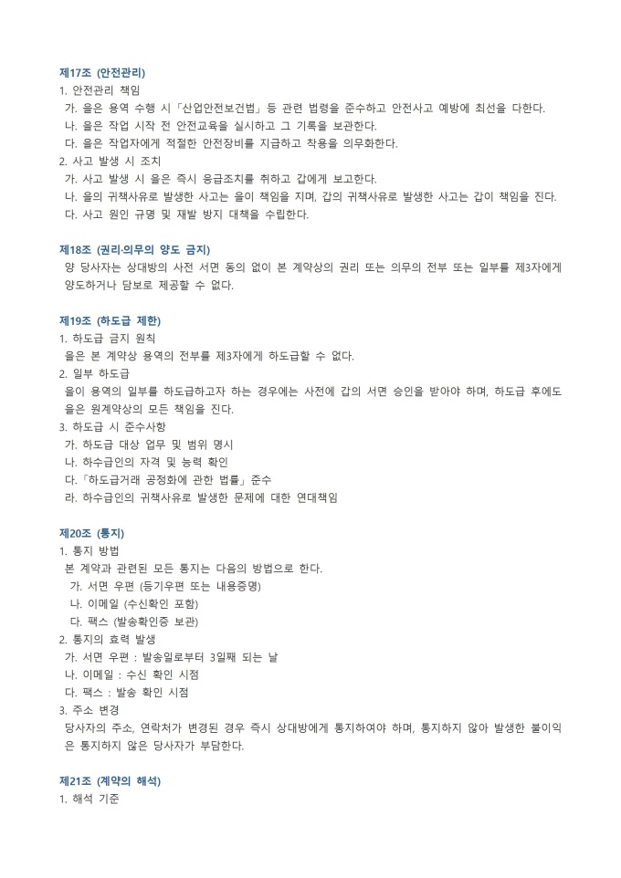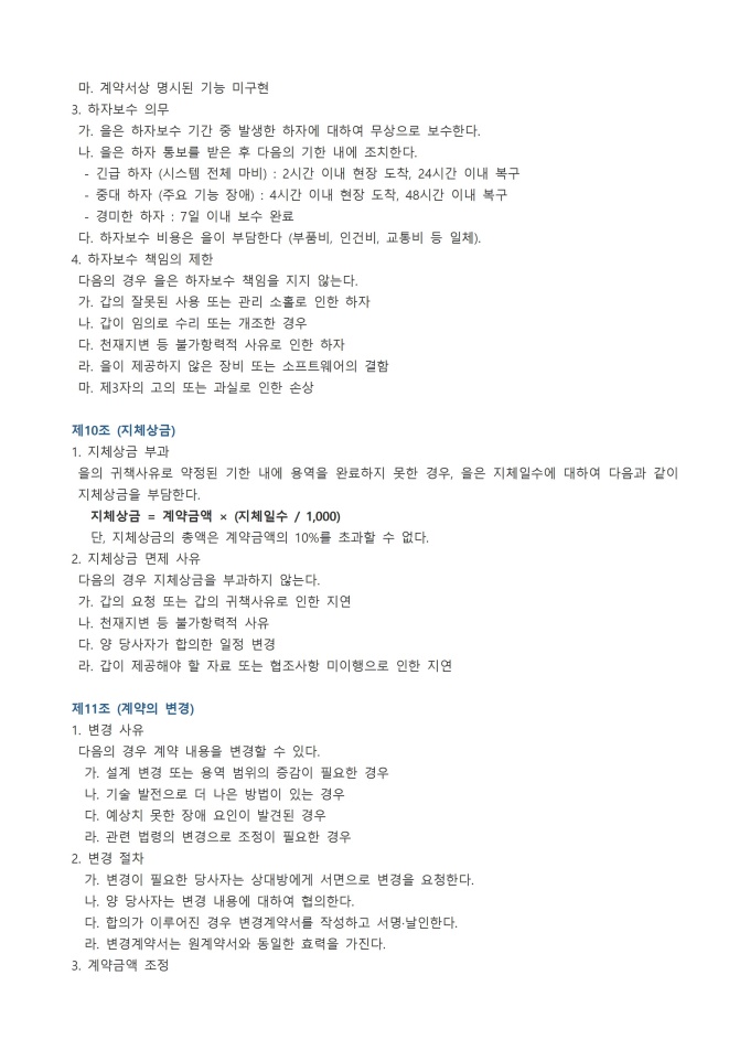 9,000원/월용역계약서 서식입니다. 용역계약서는 특정한 일의 완성이 아닌 노무의 제공 자체를 목적으로 하는 계약으로, 발주자(갑)가 수급자(을)에게 일정한 용역의 제공을 의뢰하고 그 대가를 지급하는 내용을 담았습니다.